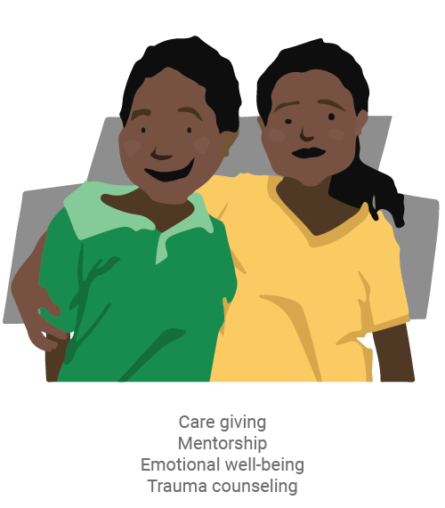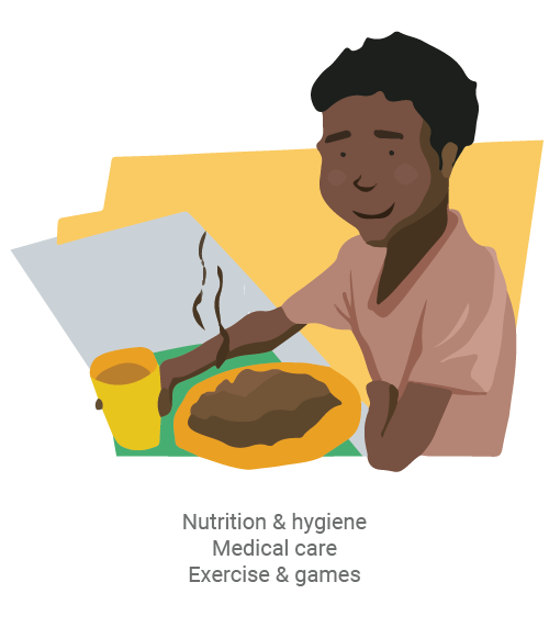 We supply sustainable support to break the cycle of AIDS and poverty in their lives. The children in our program benefit from a holistic care model by attending an after-school program at our CarePoints which is build close to their school and home. After school they receive a warm meal and locally employed CareGivers care for a group of a maximum of 15 children. All activities and program content are overseen by Christ’s Hope International to ensure up-to-date teaching methods and support systems. We are not offering a quick fix. The children enter the program at ages 6 to 8 years and graduate when they are 18.
