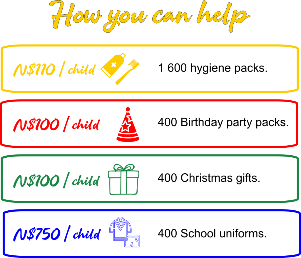 Since 2003, Christ’s Hope has been caring for orphaned or vulnerable children in CarePoints located in Keetmanshoop, Rehoboth, Okahandja and Oshikuku. Currently we serve 370 children, but our aim is to double that number by 2025 and serve more towns.